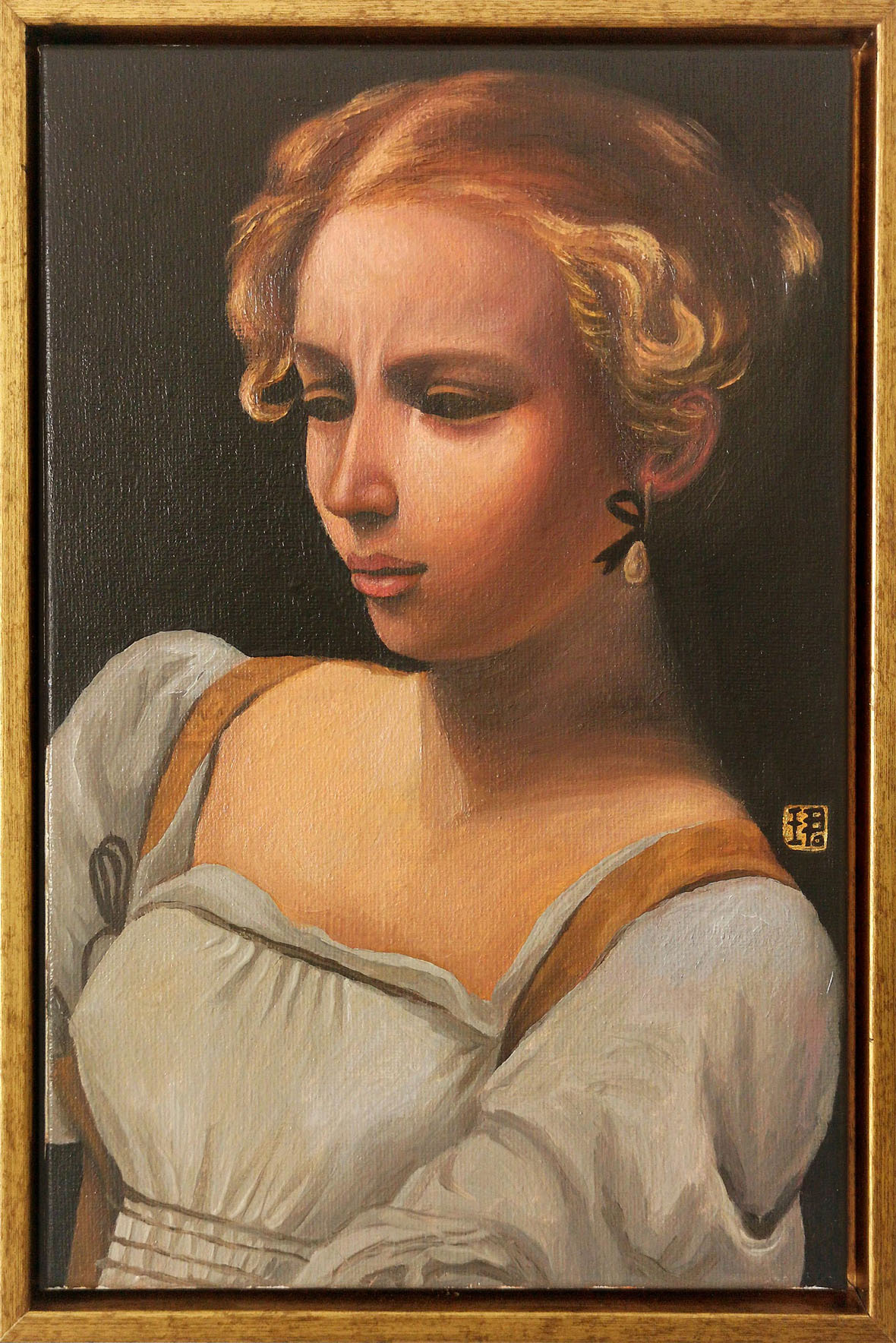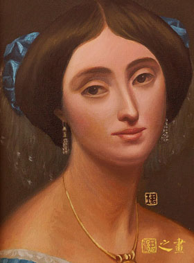 油画主题:临摹安格尔(Ingres)的作品《布罗格利公主 Portrait of the Princesse de Broglie》画布尺寸:20cmx30cm完成时间:2023.8.13