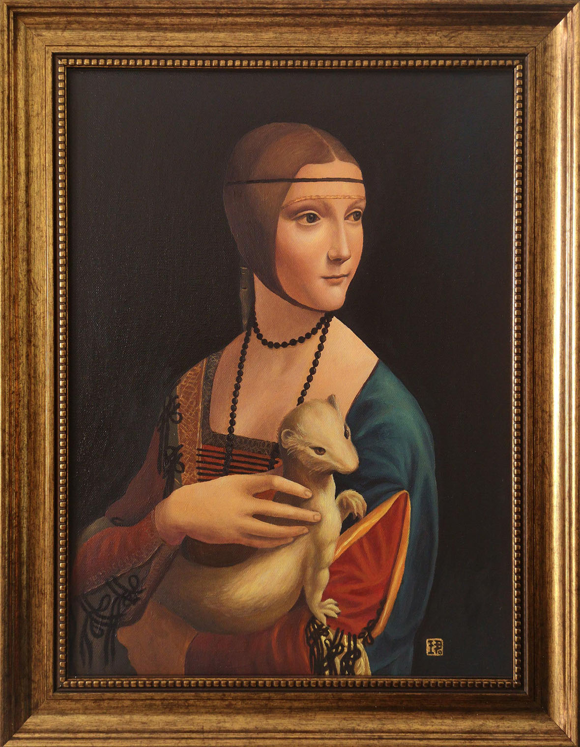 油画主题:临摹达·芬奇(da Vinci)的作品《抱银鼠的女子 Lady with an Ermine》画布尺寸:30cmx40cm完成时间:2023.9.18