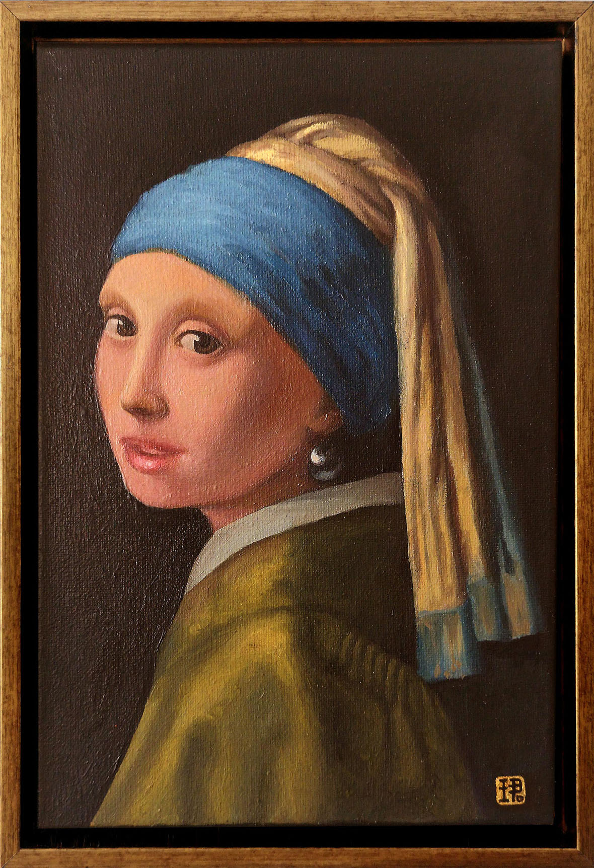 油画主题:临摹维米尔(Vermeer)的作品《戴珍珠耳环的少女 Het meisje met de parel》画布尺寸:20cmx30cm完成时间:2023.6.12