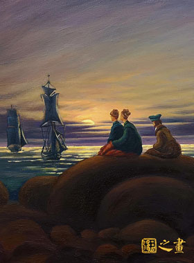 油画主题:临摹弗里德里希(Friedrich)的作品《海上升明月 Moonrise over the Sea》画布尺寸:40cmx30cm完成时间:2024.11.25
