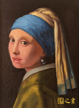 油画主题:临摹维米尔(Vermeer)的作品《戴珍珠耳环的少女 Het meisje met de parel》画布尺寸:20cmx30cm完成时间:2023.6.12